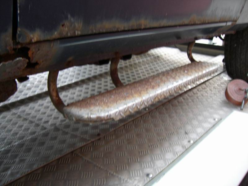 Wer hier unter Geschmacksverirrung gelitten hat als diese Trittbretter montiert wurden kann ich leider (derzeit noch) nicht sagen. Ich weiß also nicht ob es sich hierbei um Originalzubehör des Marktes im Mittleren Osten handelt oder ab die Dinger von nem deutschen Zulieferer sind. Da mir diese Art Trittbretter bisher auf dem hiesigen Markt und in Prospekten jedoch noch nirgends über den Weg gelaufen sind geht meine Vermutung eher in Richtung Zubehör aus dem Heimatmarkt. Auf jeden Fall sind sie schon explizit für den Patrol gedacht was die Befestigung der Trittbretter verrät. Die Dinger kommen auf jeden Fall ab, werden aber nicht entsorgt sondern schön aufgehoben.