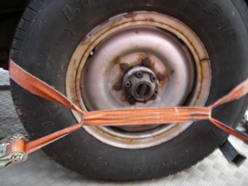 Hier nun die Originalen Sprengringfelgen. bereift ist der Patrol momentan mit 235(85R16 was auch im Brief eingetragen ist. Die eigentliche Seriengröße steht aber zum Glück auch noch drin: 7,5R16. Im gegensatz zu Opa Schlumpf verfügt der weiße Falke bereits über Scheibenbremsen an der Vorderachse und hat statt der Nabendeckel manuelle Freilaufnaben (Original Nissan).