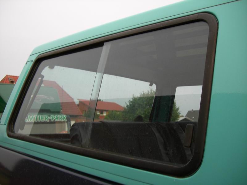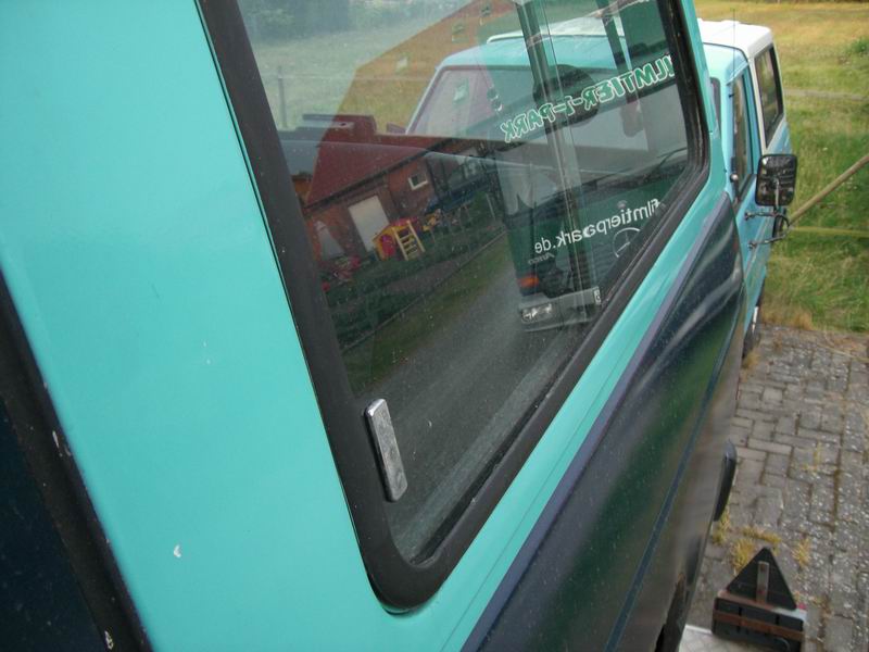 Eine Seltenheit: Scheibenrahmen ohne Rost unterm Gummi (zumindest quillt das Gummi noch nicht auf.