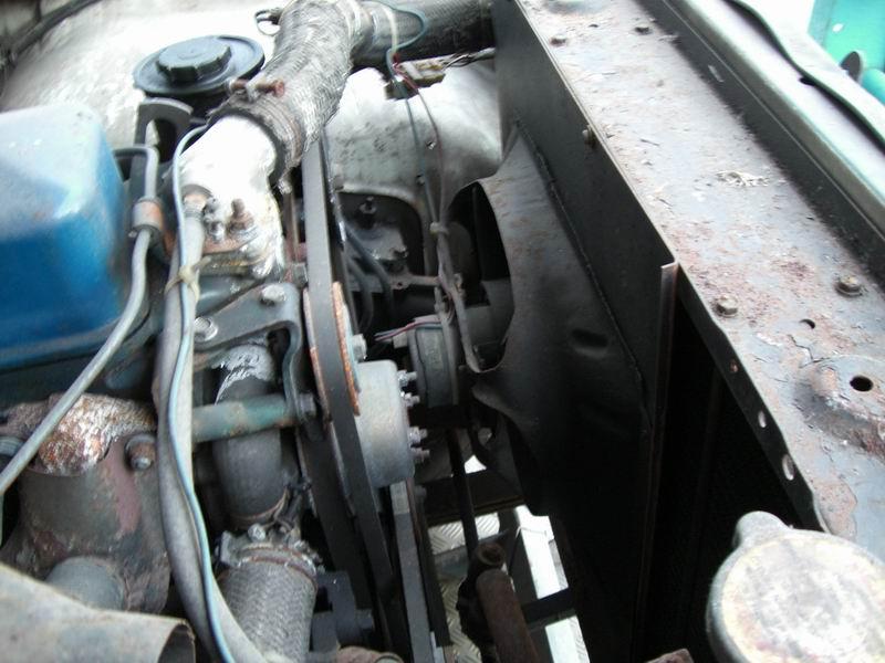 Noch ne Bastellösung vom Vorbesitzer die nach Veränderung (bzw. Rückrüstung) schreit. Da wurde der Visko gegen nen E-Lüfter ausgetauscht. Schön is das nich zumal ja auch der gesamte Kuststoffteil um das Lüfterrad fehlt...
