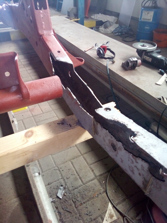 ... Auf beiden Seiten musste ich die Federaufnahme komplett entfernen, dann den unteren Rahmenteil rausschneiden und durch frisches Metall ersetzten.