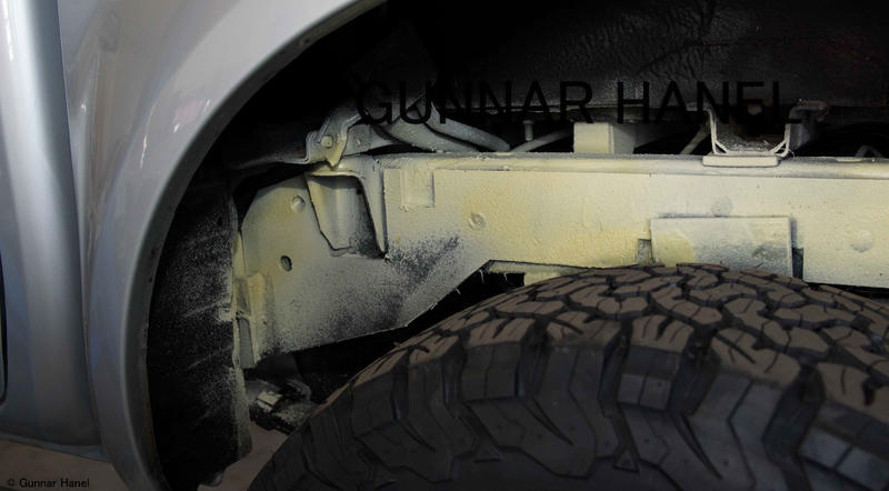 Danach wurde bei mir wieder Mike Sanders aufgetragen. Die gelbliche Masse ist eine Karosserie Fett/Wachsschicht.