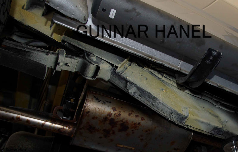 Geklebt (auf die alte Rahmenbeschichtung/Unterbodenschutz), an den Blattfederaufnahmen "abgesetzt", und an der Ladeflächenaufnahme "ausgeklinkt" ...