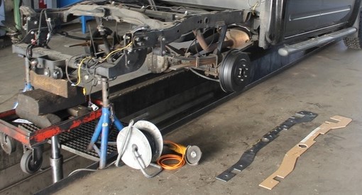 Die kürzen den Rahmen hinten und schweißen an 4 Punkten des Rahmens Verstärkungen ein.