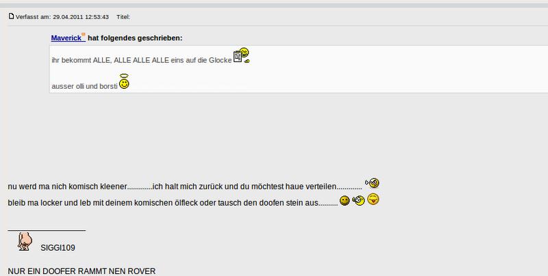 | Maverick hat folgendes geschrieben: | ihr bekommt ALLE, ALLE ALLE ALLE eins auf die Glocke