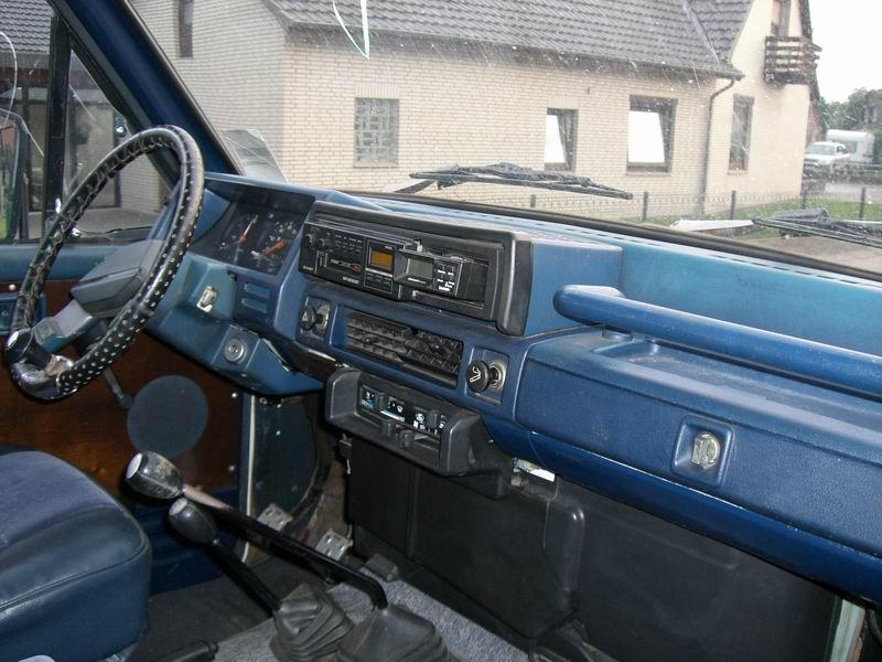 Innenausstattung wieder in Blau, bei weißer Außenfarbe nichts ungewöhnliches. Über denm Lenkradbezug und den Knauf verlier ich mal kein Wort...