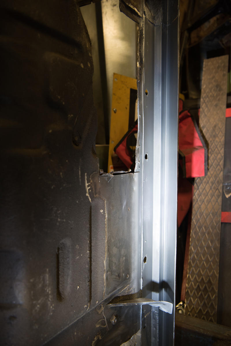 Die Schwelleninnenbleche werden komplett neu. Eine Seite fertig. Die gekanteten Aussenbleche sind mal ersetzt worden. Perfekte Substanz, werden soweit integriert.