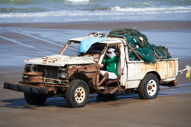 ...eine herrliche "Rosine" von einem ganz anderen Strand in Oman; ein Auto - nicht mehr ganz neu...