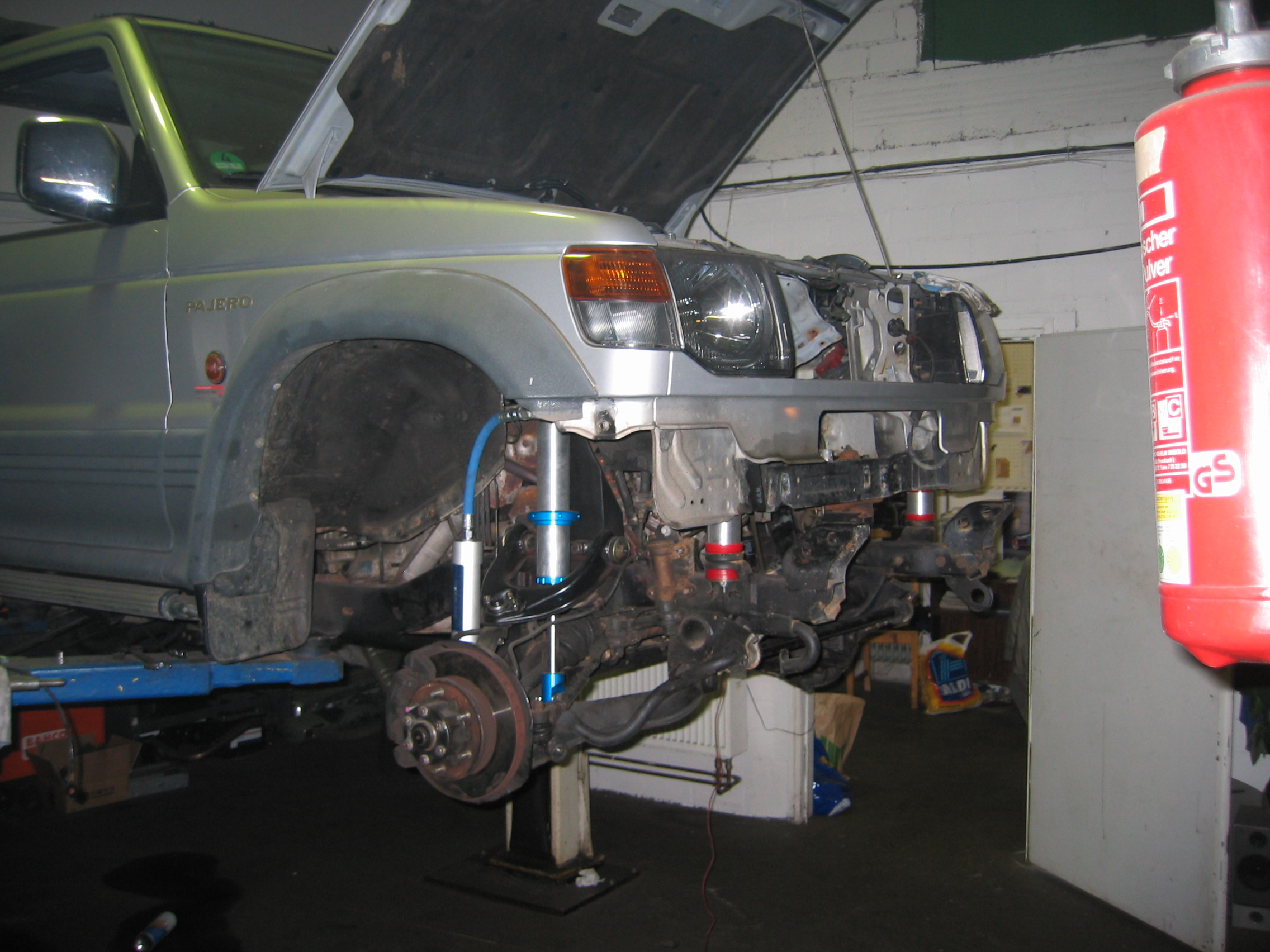 wer Interesse an Fahrwerksumbauten hat dem mache ich gerne eine Angebot ich biete für fast alle Modelle Fahrwerke an. Was ich sehr empfehlen kann für Pajeros sind TJM Fahrwerke absolut spitze. Ich habe gerade noch 3 Fahrzeug zum umbauen in meiner Werkstatt. Bei einem Pajero verbauen wir vorne AFN Dämpfer das sind Dämpfer mit Federn die an den original Aufnahmen verschraubt werden.
