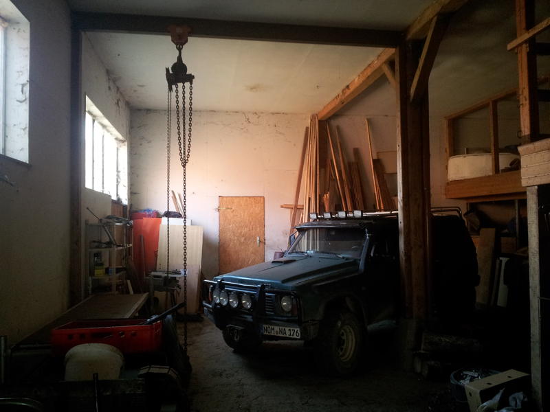 Davor hab ich noch nen DoppelT eingezogen und mit ner Laufkatze und Kettenzug bestückt ....hat mich etwa das gleiche gekostet wie ein motorkran aber hat mir besser geholfen weil ich damit den motor auf die werkbank legen konnte ,drehen etc und ich kann damit nachher auch noch was vom Anhänger laden etc.