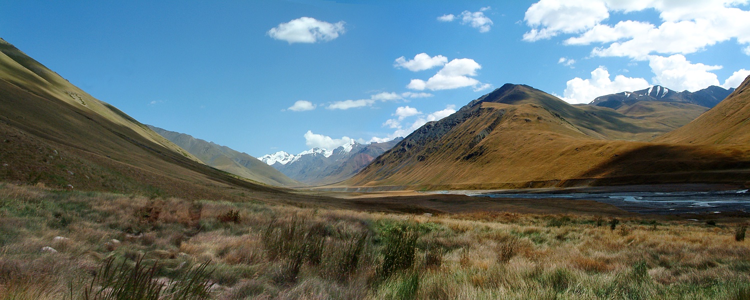 See ’’ Kel-Su’’ in Kirgizien, In Geländeautos werden längere Strecken durch atemberaubende Berglandschaften zurückgelegt, zwischen einzelnen Abschnitten,