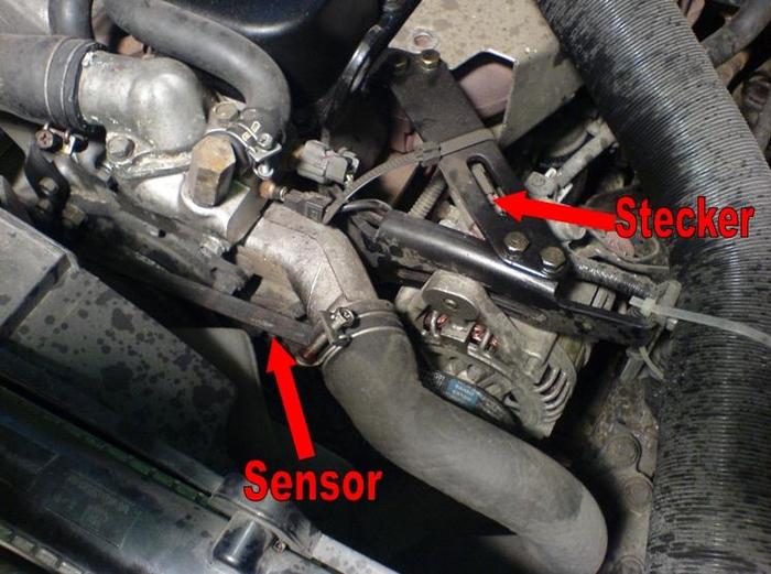 Beim Diesel (TD25/ 80Ps) sitzt der Sensor etwa zwischen Wasserpumpe, also Lüftterradachse und Lima in der Stirnwand des Motors und ist über einen Stecker, der an dem Halter (der Obere, wo auch der Keilriemen gespannt wird) der Lima befestigt ist, gesteckt... vielleicht hat der Marder das Kabel mit angefressen