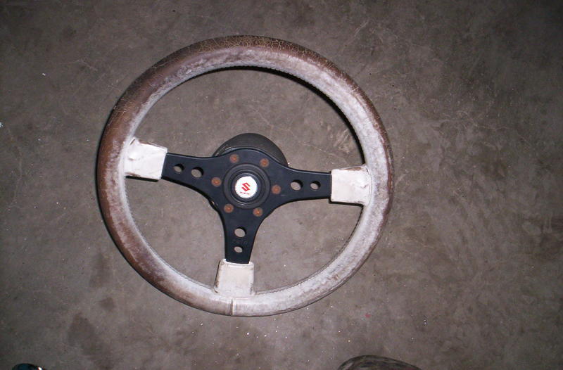 Einmal 36er Raid Sportlenkrad mit Nabe. Das Lenkrad ist schon ziemlich abgegriffen, aber die Nabe dürfte nach wie vor interessant sein.