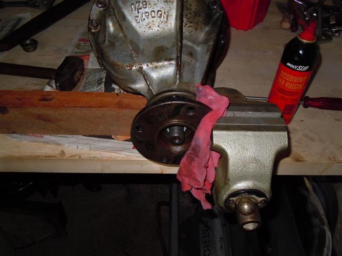 Als Halterung für den Flansch nimmt man normal ein Flacheisen, bohrt 2 Löcher in der Größe vom Flanschlochbild und schraube es an den Flansch. 60x10 ist eine gute Größe. Durch das Schweißen ist er mit Sicherheit nicht mehr plan und könnte die Gabel der Kardanwelle die aus geschmiedeten Stahl besteht beschädigen oder verziehen.