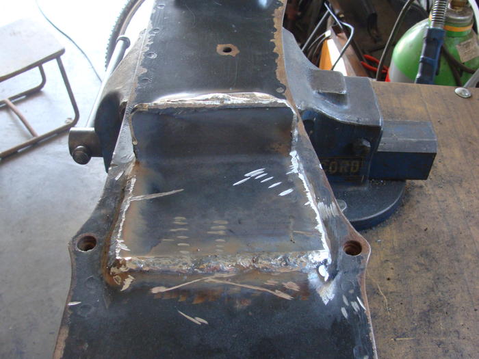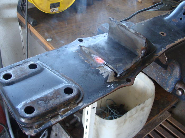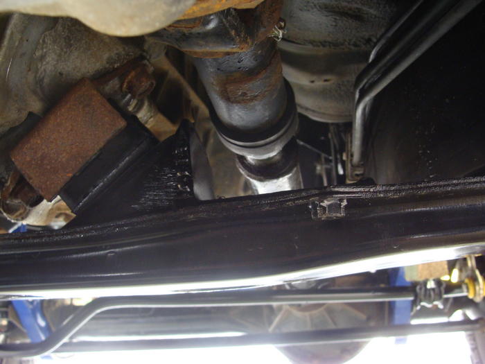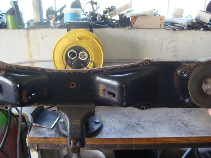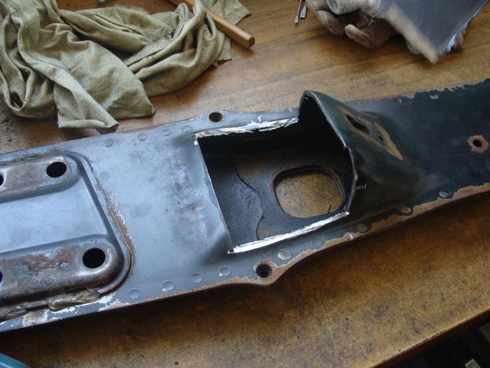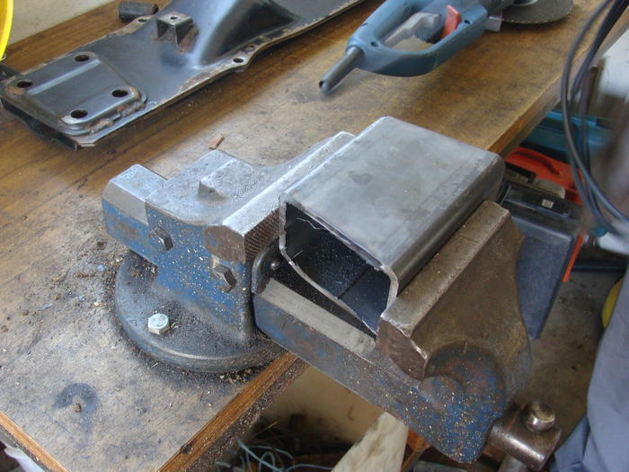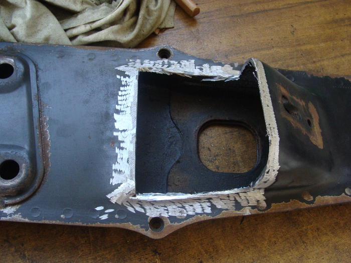 Bearbeitung Getriebetraverse um wieder Freigängigkeit für die vordere Kardanwelle zu schaffen (abgeguckt bei Superior )......