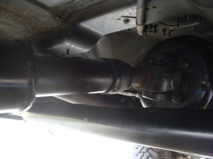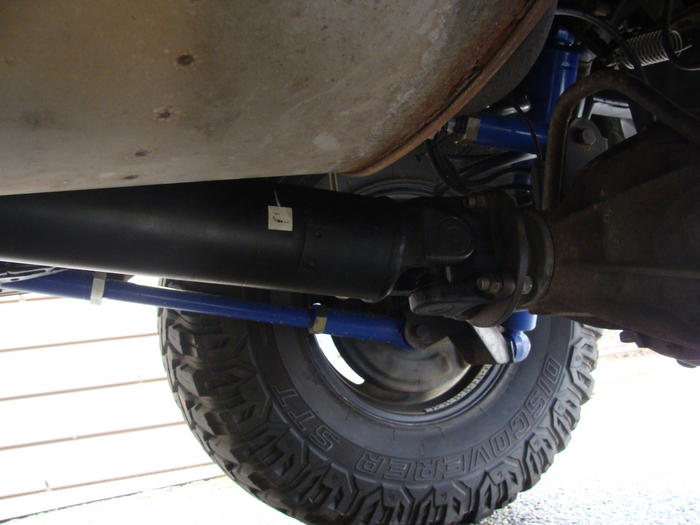 Wie wenig Platz ist nach 4" Lift sieht man erst wenn die Plastikverkleidungen ab sind...tatsächlich liegt die Kardanwelle bei einseitigem Einfedern dann an der Traverse voll an und schleift