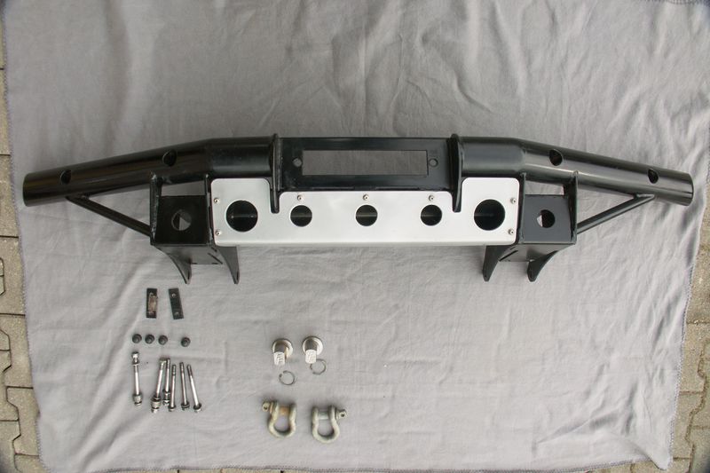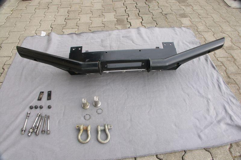 - Windenstoßstange, für Land Rover Defender mit Klimaanlage, schwarz beschichtet, Lieferung ohne Edelstahl-Aufnahmen für Schäkel und Schäkel, Neupreis: 519,- Euro