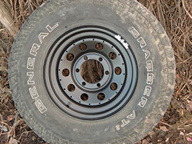 frisch sandgestrahlten und schwarz-matt pulverbeschichteten und gewuchteten Stahlfelgen.