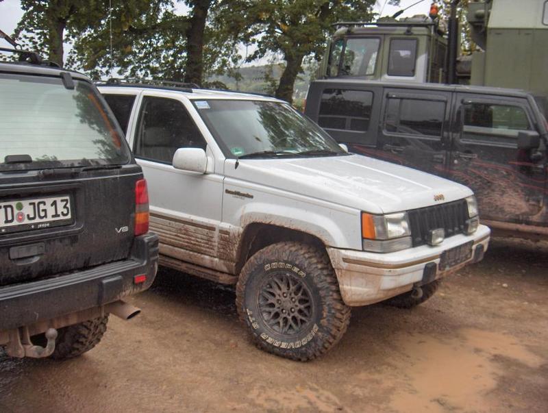 Grand Cherokee ZJ, Bj. 95, weiß, D3, mit 3,5" RE-Superflex Fahrwerk, inkl. oberer einstellbarer Längslenker, Bilstein 5100 Stoßdämpfer, 31x10,5x15 Cooper STT, Rockslider und Skidplate VTG, Detroit TrueTrac HA, das ganze mit AHK als Zugpferd für meine QH, immer öfter auch zum Offroaden.