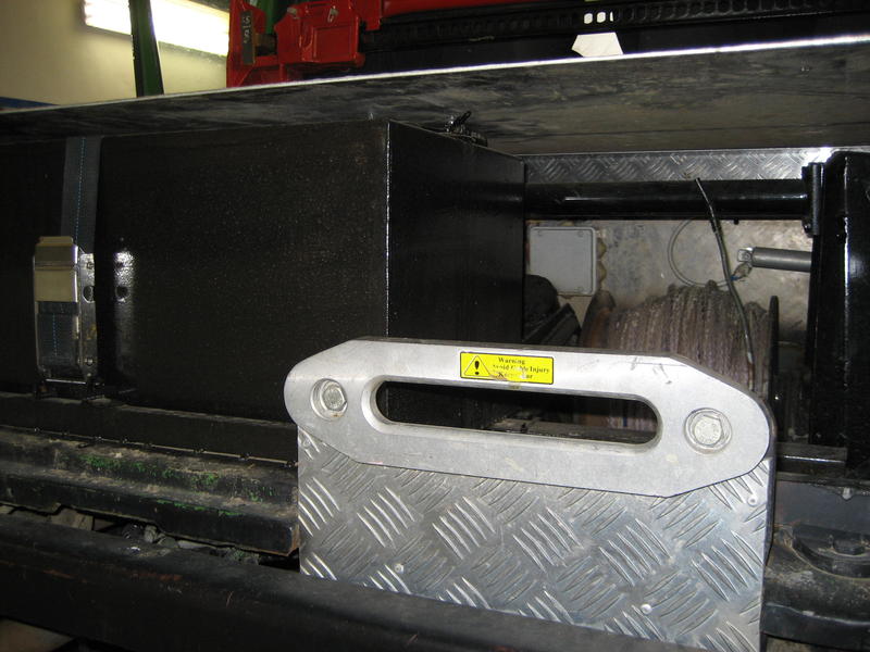 Warn 8000 mit 40m Kunstoffseil und Funkfernbed.