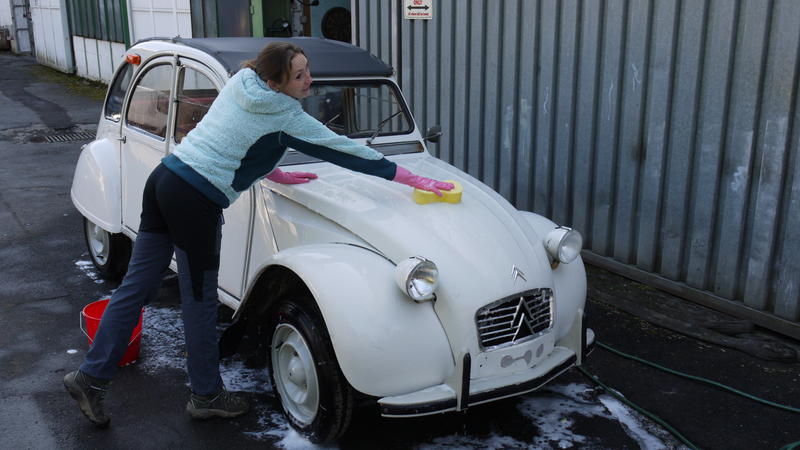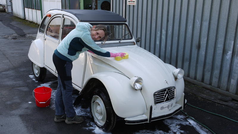 Zunächst hatte meine liebe Anna Izabela sich ja zickig, aber dann hat ihr die Wagenpflege doch sichtlichen Spaß gemacht.