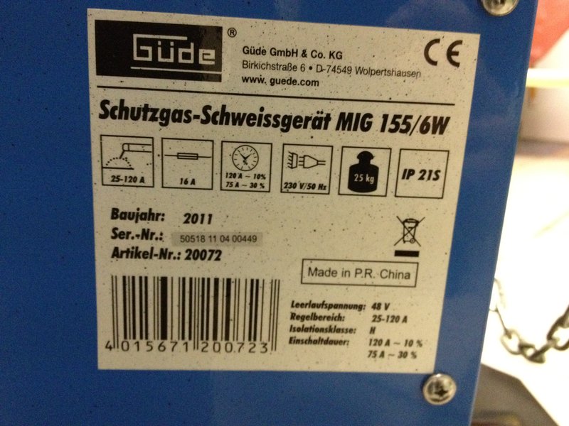 Verfasst am: 26.05.2012 20:37:20 Titel: Güde Schweissgerät Mig 155/6W Komplettpaket |