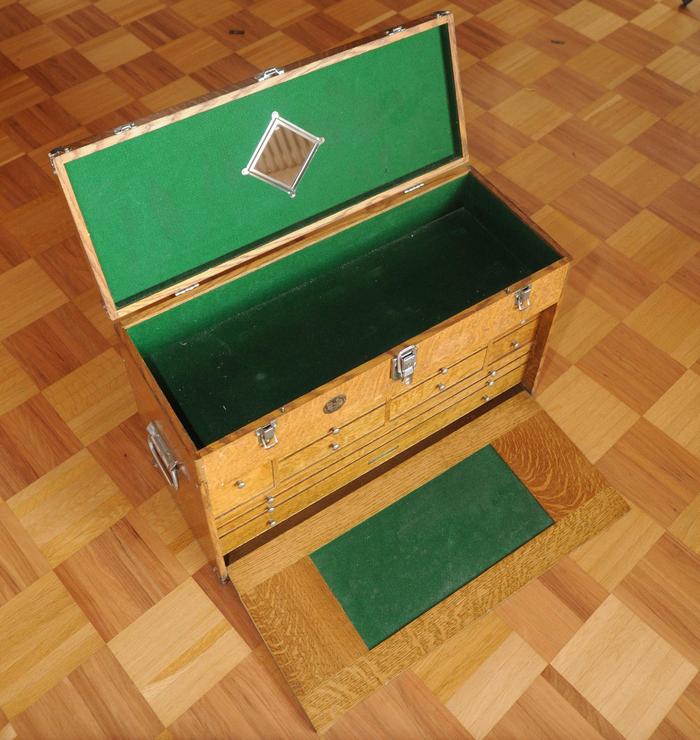 Diese Werkzeugkisten wurden in den 30ern von den Reisenden Mechanikern in den USA verwenden um deren Werkzeuge zu transportieren / aufzubewahren. Die Kisten gibt es in der Art noch Neu zu erwerben (Neupreis liegt bei 1.420 Dollar ohne Versand!!!)