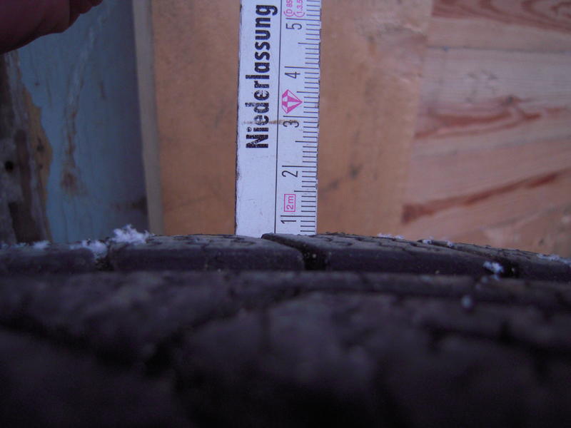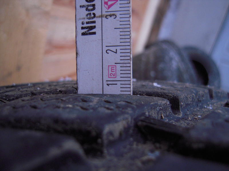 Hab noch die Winterreifen meines Terrano herumfliegen. Profiltiefe gemessen um die 6mm, keine Blockausbrüche, keine Beulen oder sonstige Beschädigungen erkennbar.