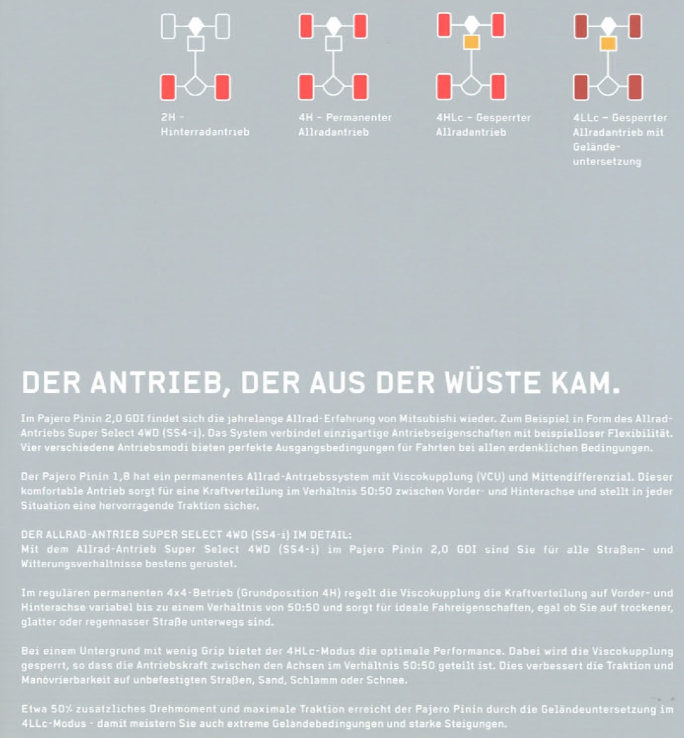 den Pinin gab es mit Suse aber auch einige 1,8er mit vollautomatischem Allrad per Viscodose ohne Untersetzung.