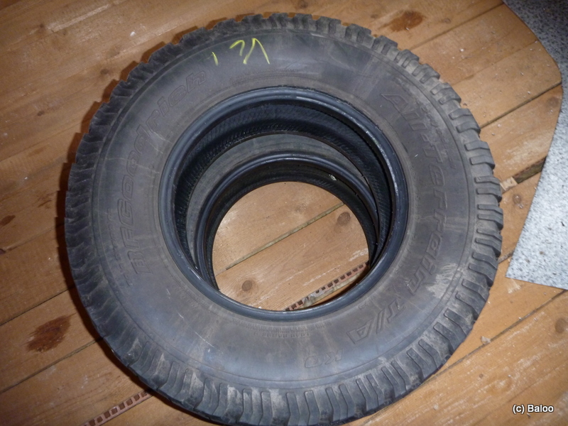 Ich hab noch 8 BFG AT 265/75-16 auf dem Dachboden eingelagert als Ersatzreifen für "irgendwelche" größeren Touren.