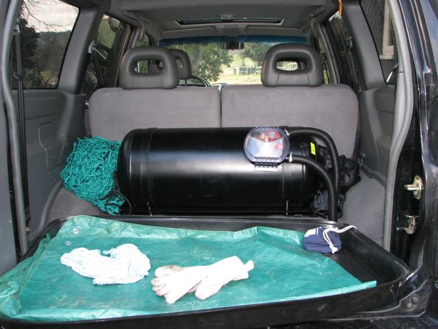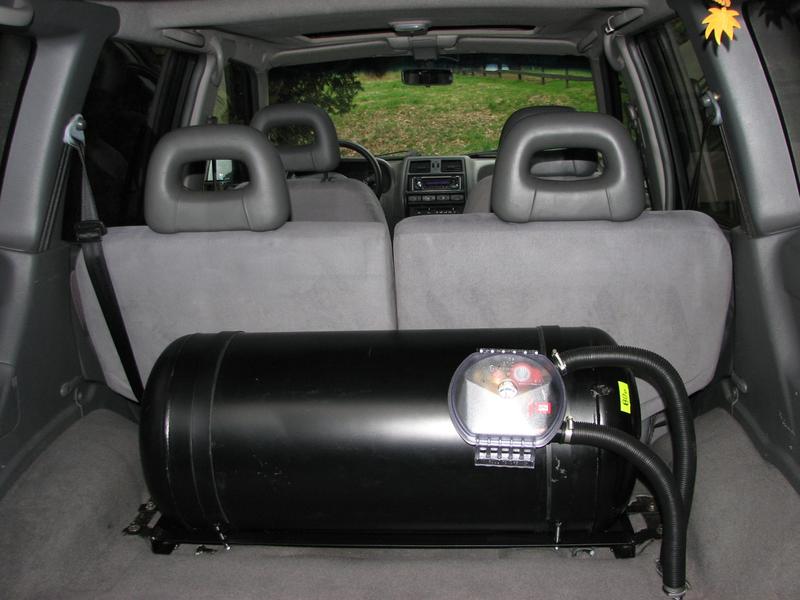 Dann wurde eine FlüssigGasAnlage verbaut - "BRC Sequent 24" mit einem 80 Liter Zylindertank im Kofferraum - dafür wurde die dritte Sitzreihe ausgebaut. Alles eingetragen und getüvt.