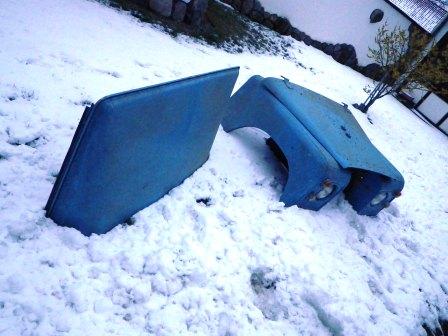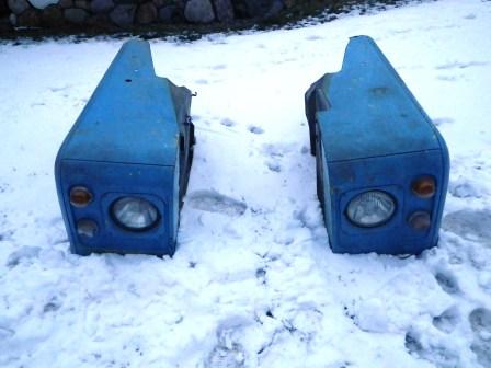 alle Teile sind im guten aber gebrauchten Zustand, paar Kratzer und wenige leichte Dellen. Keine ausgefransten Löcher ...bis auf die Scheinwerfertöpfe kein Rost, kein Gammel.