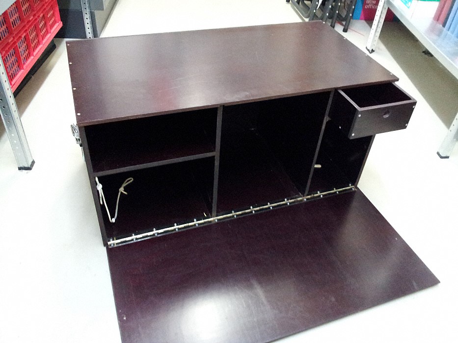 Nachdem ich mir inzwischen etwas anderes gebaut habe, verkaufe ich meine Küchenbox aus wasserfester Multiplixplatte. Das Teil ist rund 40 x 40 x 80 cm groß, die beiden linken Fächer sind exakt für 30x40cm-Euroboxen ausgelegt (nicht im Lieferumfang), rechts oben gibt es eine Schublade, darunter ist Platz für einen 10l-Wasserkanister (einen nagelneuen, unbenutzten mit Hahn gebe ich dazu) o.ä.. Der vordere Deckel klappt nach unten und lässt sich mittels zweier Haltebänder im offenen Zustand als Arbeitsfläche verwenden. Verschlossen wird die Klappe mit zwei stabilen Verschlüssen, links und rechts gibt es einen stabilen Klappgriff zum Tragen und Verzurren.
