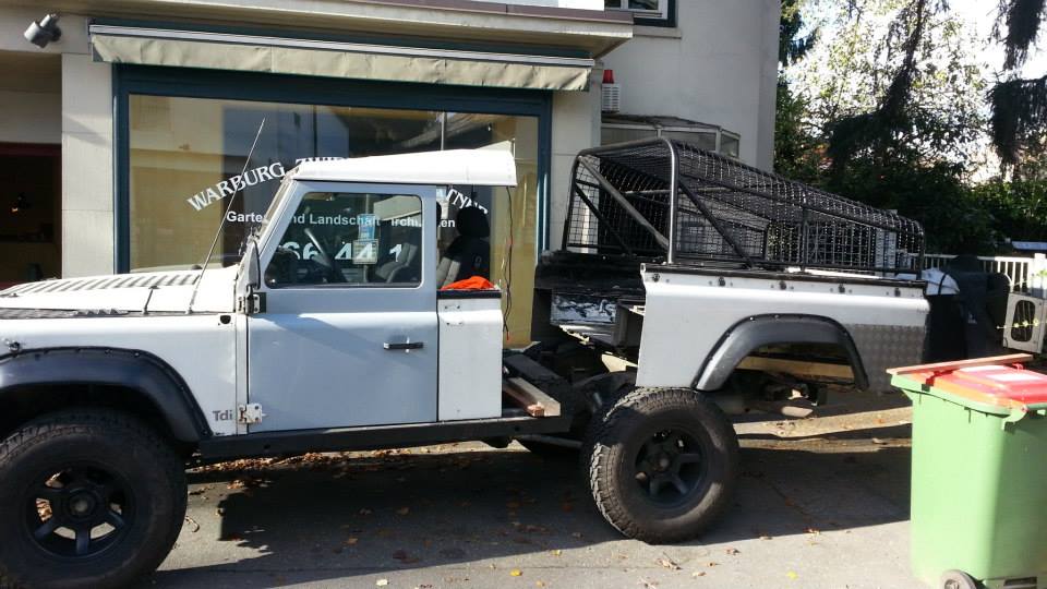 Mein Defender befindet sich gerade im Umbau zum Reiseauto. Bekommt lange Übersetzung, AT Bereifung, Heckwanne runter, Kabine bin ich gerade am bauen, Rahmen wurde gestrahlt neu lackiert und Hohlraumversiegelt, Karosserie gerade frisch umlackiert usw.