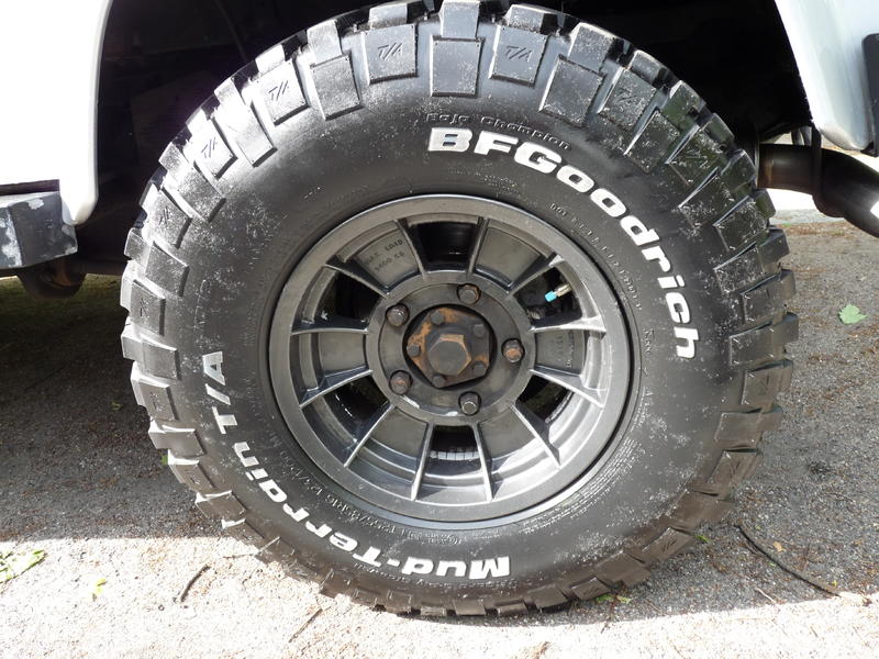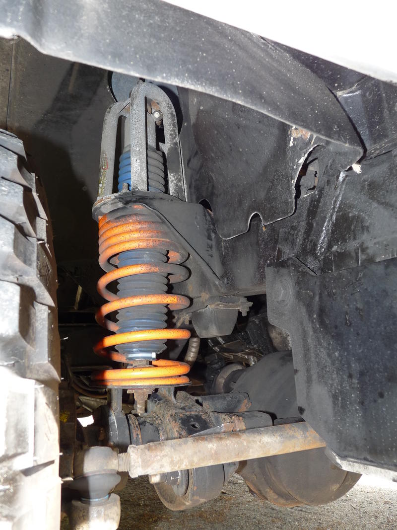 Auf das Fahrwerk habe ich besonderen Wert gelegt. Es sind 4-Ward Federn mit ca. 4 cm Höherlegung, Proflex Dämpfer verstellbar eingebaut, Leichtmetallfelgen Performance mit erhöhter Traglast und einer von 4mm weshalb keine Spurverbreiterungen benötigt werden, mit BF Goodrich Mud-Terrain T/A 255/85 R16, Stahlflex Bremsleitungen vorne/hinten, Steckachsen von Ashcroft, Diffsperre hinten (TrueTrac Locker), 4-Pin HD Differial vorne, Verstärkte Kupplung, Handbremse als Scheibenbremse.
