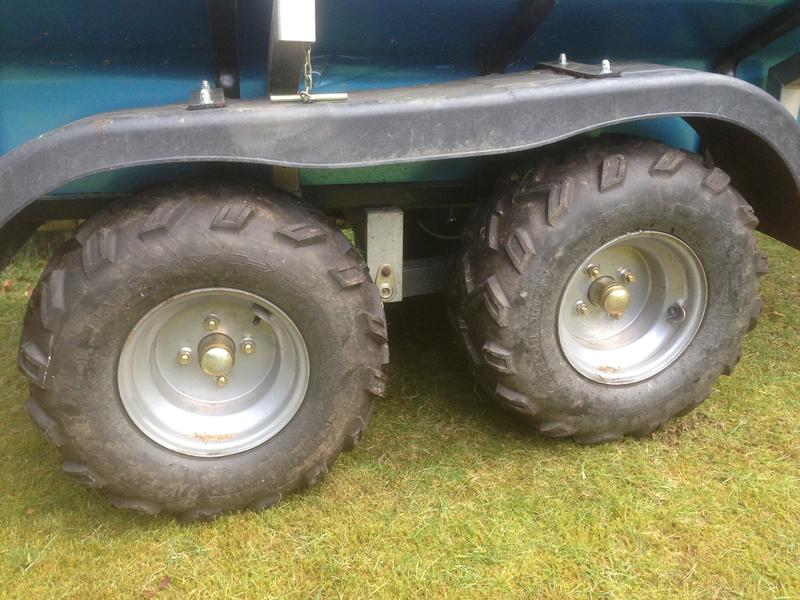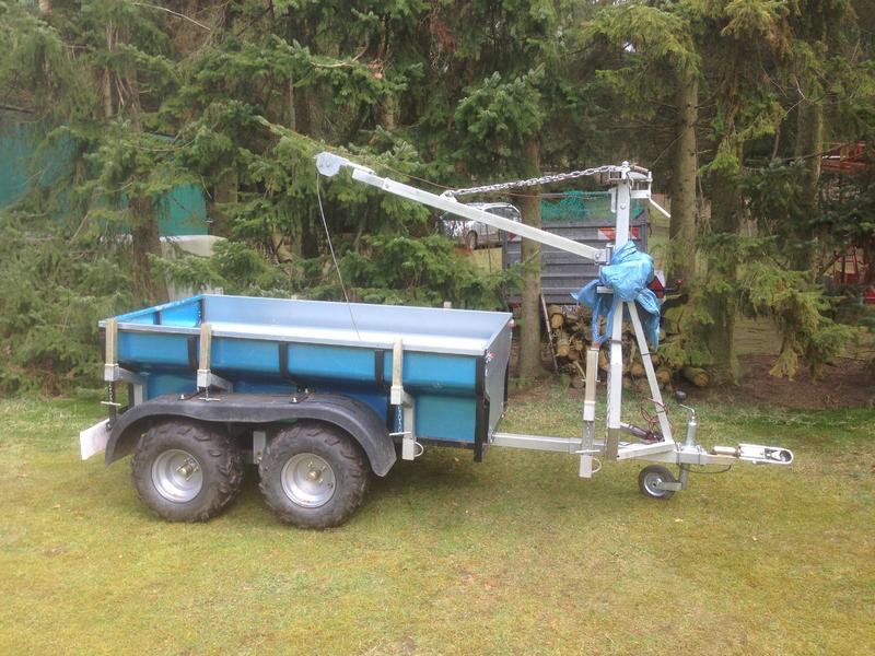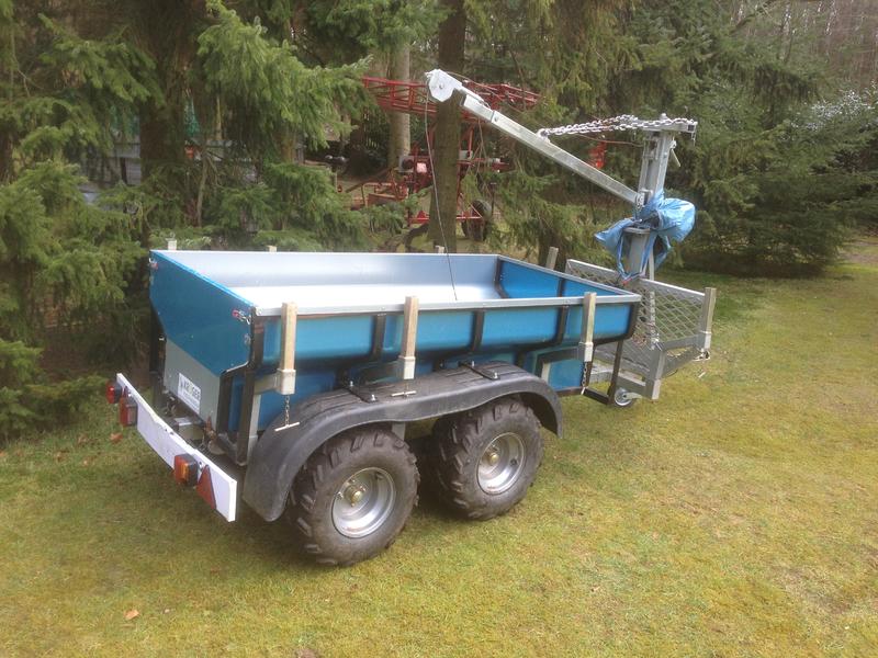 Wenn ich das richtig sehe, ist der Anhänger ungebremst?? Demnach zGG max. 750 Kg, macht bei der massiven Bauweise mit Kran und geschätzte 450 Kg Zuladung. Da macht ein Doppelachser natürlich Sinn.