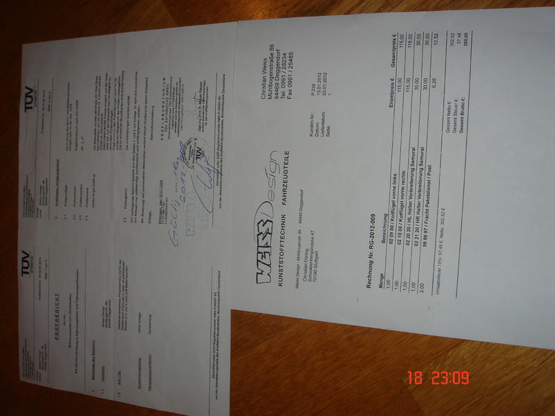 Verfasst am: 18.07.2015 22:55:08 Titel: 2 GFK Kotflügel Suzuki SJ Samurai von WEISS mit Gutachten |
