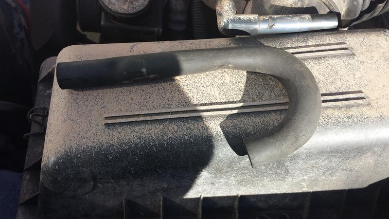 suche den Schlauch, der die Unterdruckleitung vom Ventildeckel mit LuFi-Kasten verbindet.