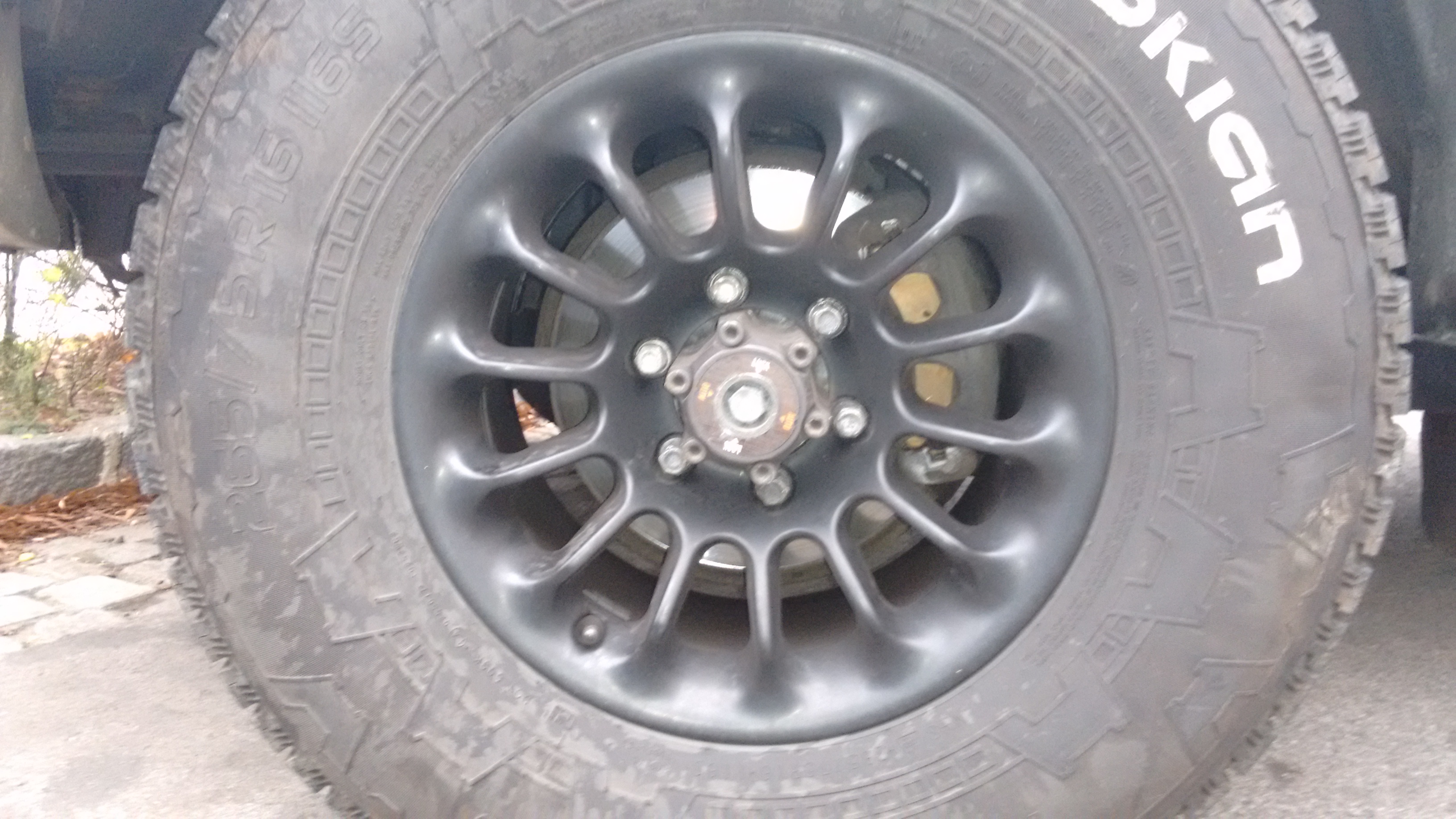 Der neue soll auch wieder für Afrikafahrten genutzt werden und ich habe günstig die passenden Reifen dazu bekommen: BFG AT 265/75R16 (auf den Original-Felgen). Das Problem ist, dass nur 265/70R16 eingetragen ist.
