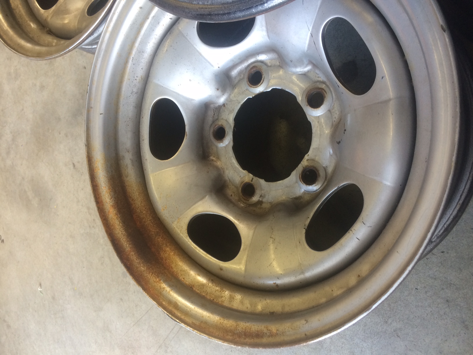 Eine Felge mit etwas Flugrost (war wohl der Ersatzreifen)