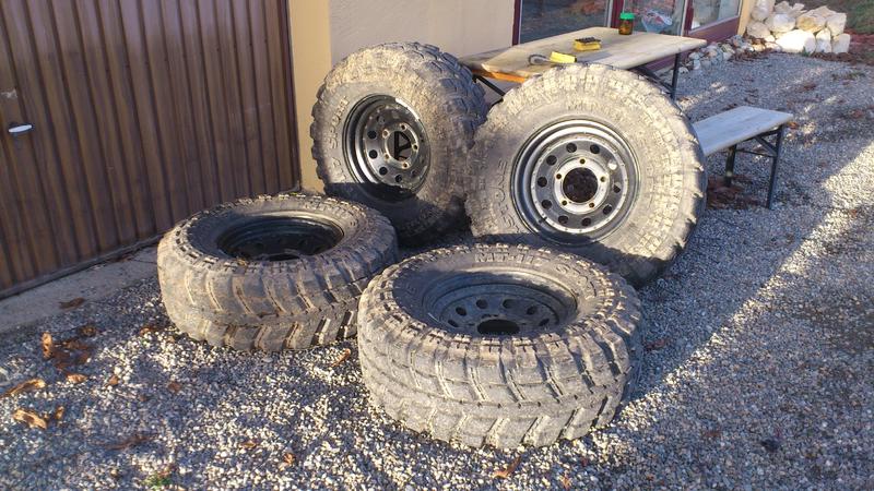 Die Felgen habe ich im letzten Frühjahr sandstrahlen lassen und neu lackiert. Sie sind also rostfrei, haben aber durchs Gelände auch schon wieder
