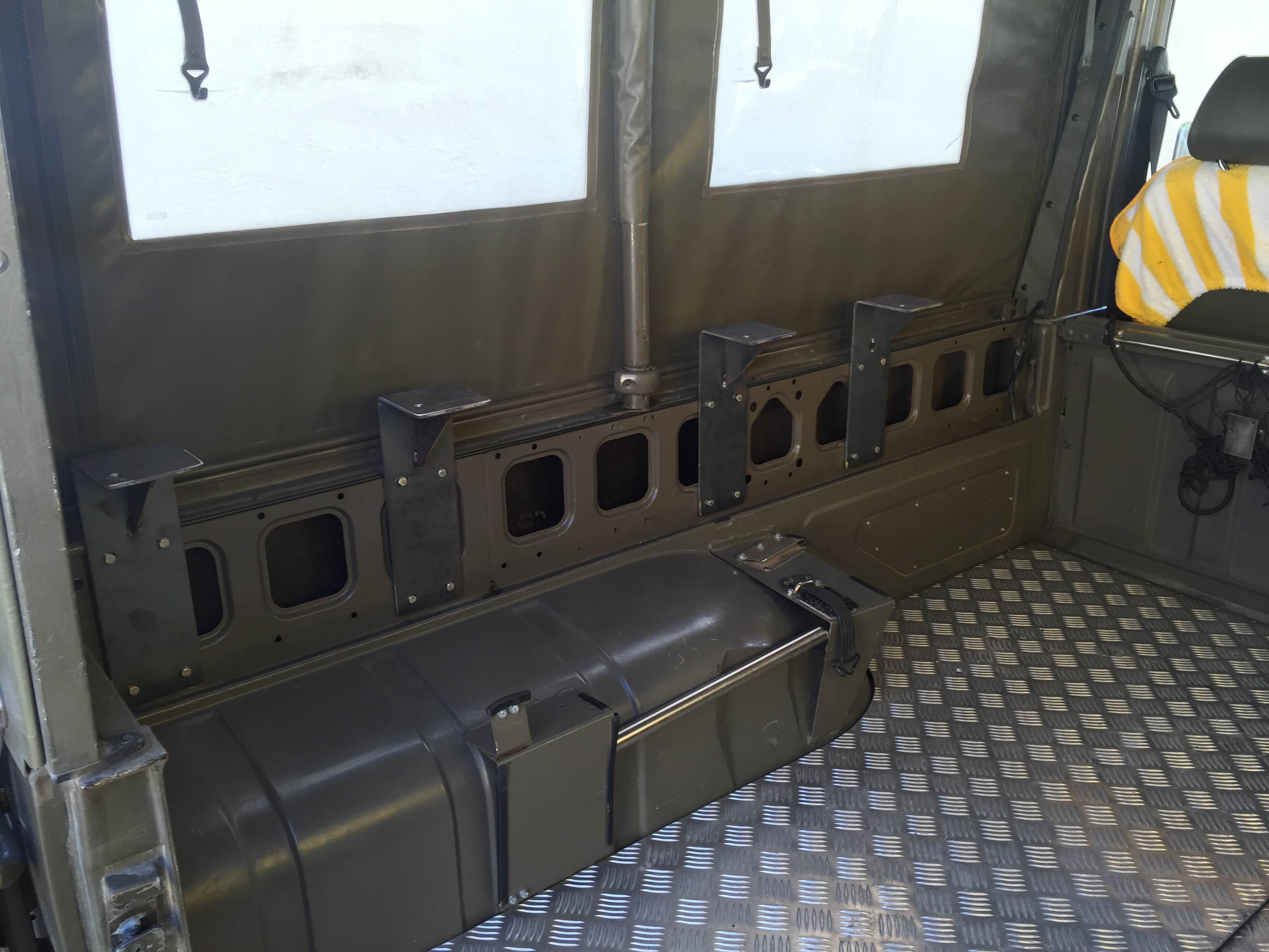 Ich habe mich auch an einen Innenausbau für meinen kurzen G entschieden, hierbei soll man darauf nicht schlafen können sondern nur als Ablagefläche dienen. Der ausbau ist aus Eichenbrettern gemacht, schwer aber gut. unten ist ein 2. boden eingezogen welcher unter sich den campingtisch beherbergt, dieser ist somit entnehmbar ohne die boxen zu bewegen. Bessere Bilder kann ich machen wenn es jemanden interessiert :)