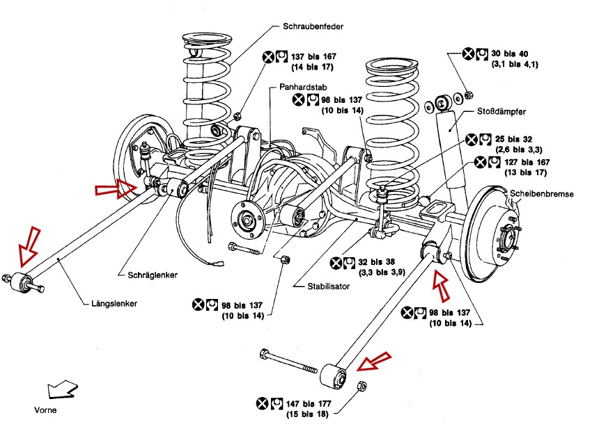 - Bricht eine Schraubenfeder der obigen Lenkerachse, muß diese ausgetauscht werden, die Karre hängt an der Stelle sonst runter
