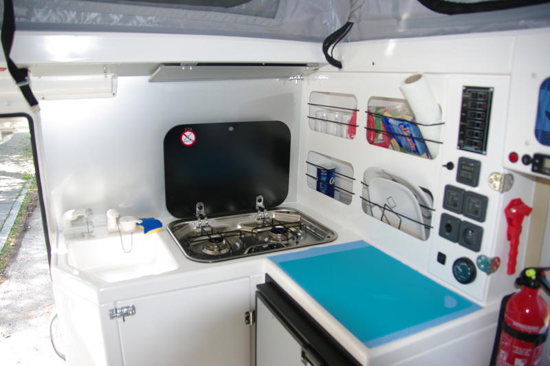 Basisausstattung: Kabine von PSI AZALAI Bettmass: 185 cm x 130 cm. 15 mm Isolation im 21mm starken GFK Aufbau Eberspächer Hydronic Dieselheizung für Warmwasser mit Wärmetauscher für Innenraumheizung. 120W Solarpanel 30L Abwassertank .120L Frischwasser 2 x 80Ah AGM Aufbaubatterie. Gasraum für 2 x 2,75kg Campinggaz-Flasche R907 SMEV 2-Flammkocher .Kompressorkühlschrank Indel B, 50 L Thetford C200 Kassetentoilette mit SOG Entlüftung Duschkopf für innen und aussen.Tisch für innen und aussen. 4 Alu Sandbleche Beiseitige Marquise