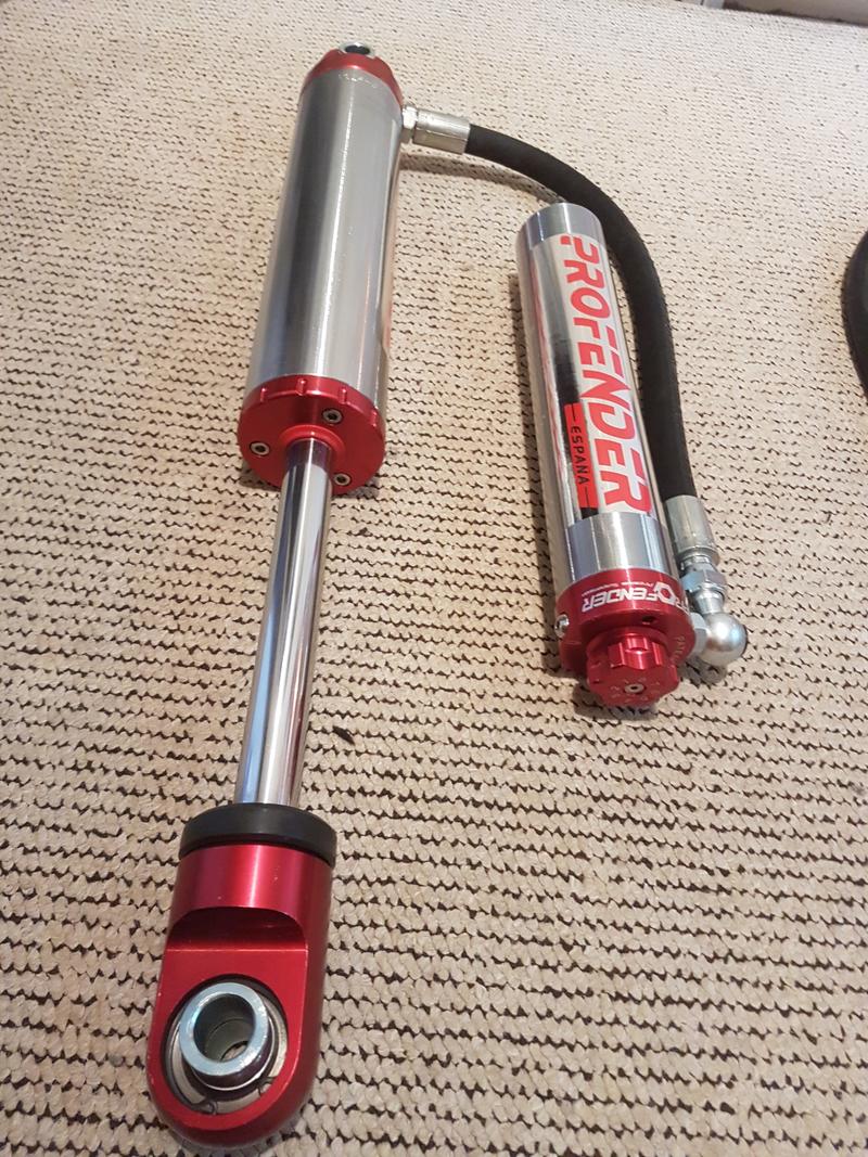wir haben hier noch vier nagelneue Profender Hi-End Stoßdämpfer mit externem Reservoir und 8-fachem Druckstufenversteller liegen.