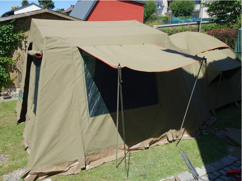 Das Zelt ist aus dem gleichen Stoff wie die bekannten Dachzelte und so gut wie unkaputtbar. Es ist aus Südafrika importiert und meines Wissens nach so nicht in Deutschland erhältlich.