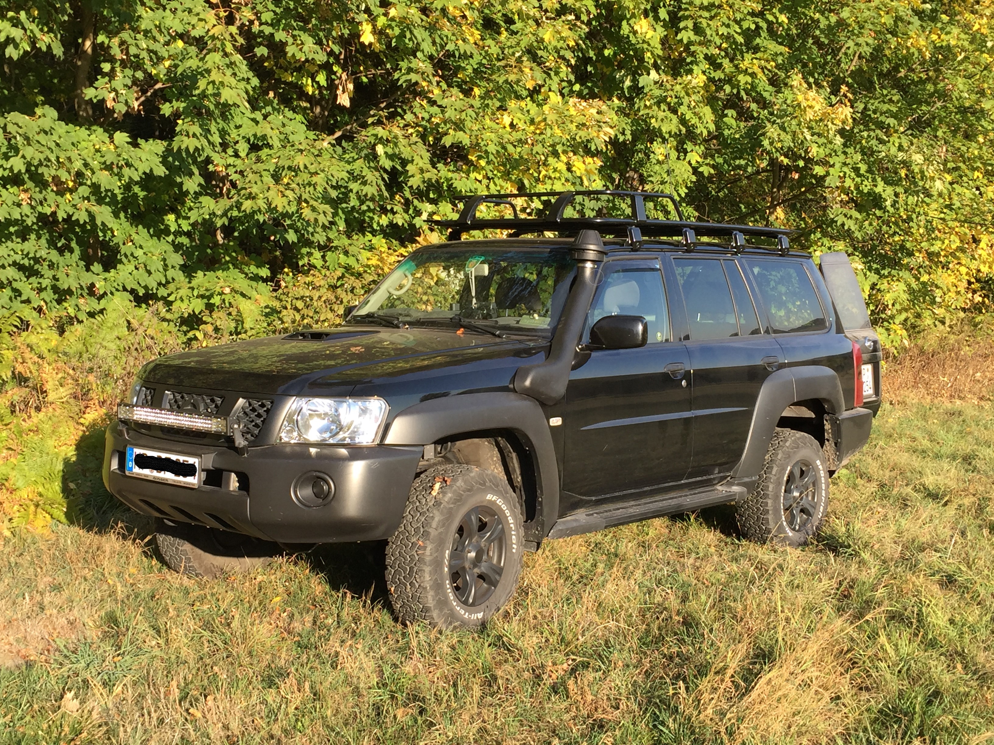 Verbaut wurde vorher schon ein Safari-Schnorchel mit Pilzkopf vom Offroadmanni. Meines erachtens besser als der normale Ansaugschacht, da hier das Regenwasser wieder herausgeschleudert wird und nicht angsaugt wird.