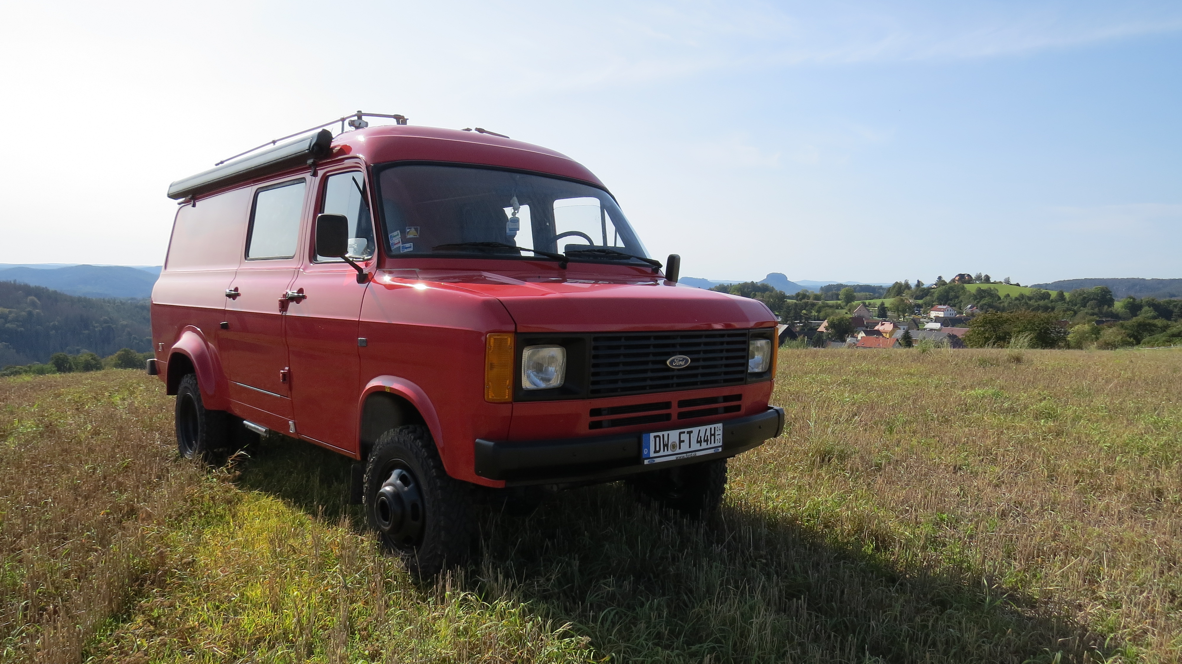 Wikipedia: "In 1982 a four-wheel drive version was added to the German market, called the SIRA-Ford Transit. This was developed together with Rau GmbH, a dealer in Stuttgart.[22] "SIRA" is a portmanteau of "Sinpar" and "Rau" - in addition to selling Fords, Rau was the agent for French four-wheel-drive specialist Sinpar in Germany, Austria, and Switzerland. The SIRA Transit used a Sinpar transfer case and other parts, and was available with the 2-liter petrol four or the 2.4-liter Diesel, on either wheelbase.[23] The 4x4 Transit was later offered in other markets as well."