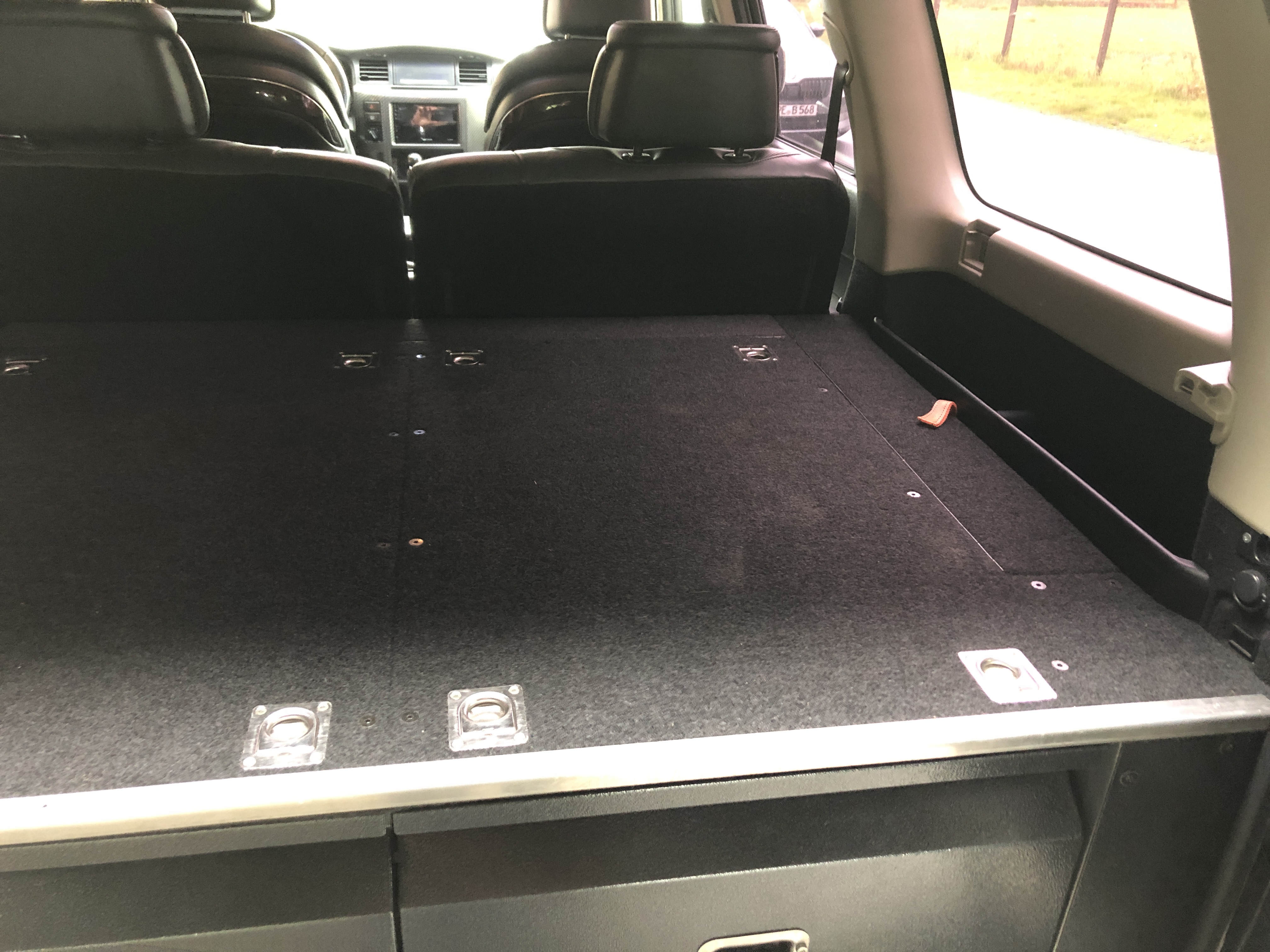 Neben dem Schubladenelement gehört noch ein Erweiterungsmodul dazu, welches anstelle der Rücksitze eingebaut werden kann und somit eine vollwertige Schlaffläche bietet. Neben zusätzlichen Staufächern findet in dem Modul auch eine Kühlbox Platz.