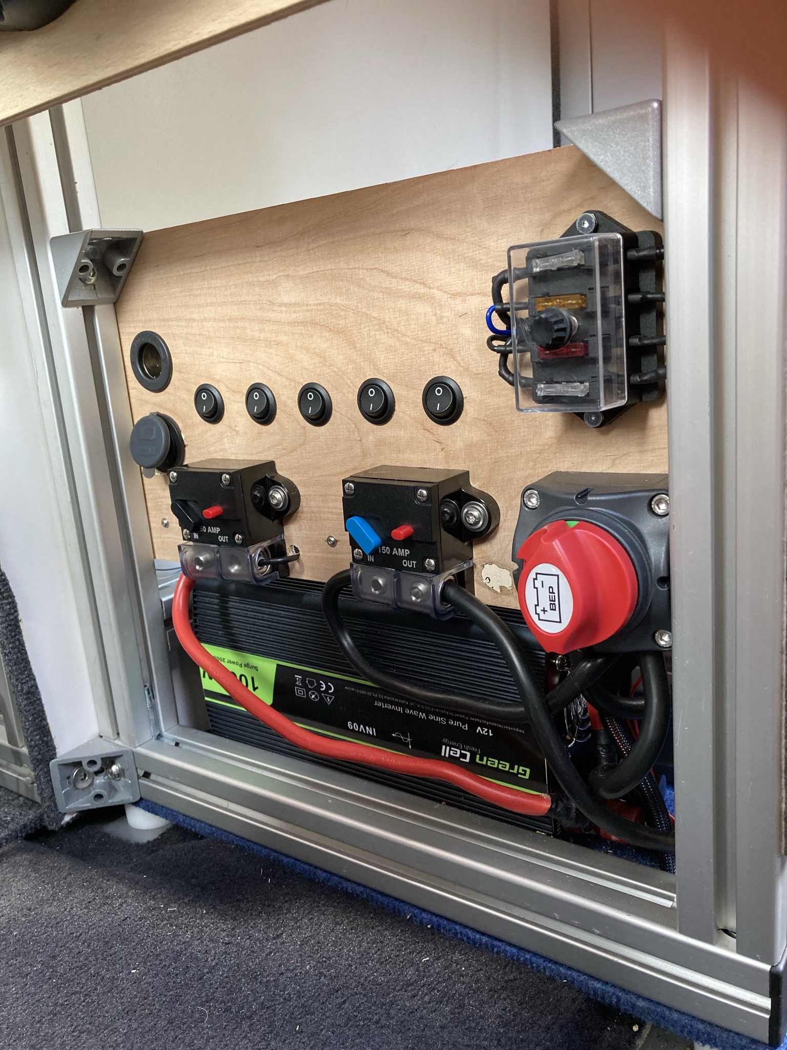 - Steuerpanel mit Sicherungsautomaten und Sicherungen für einzelne Verbraucher